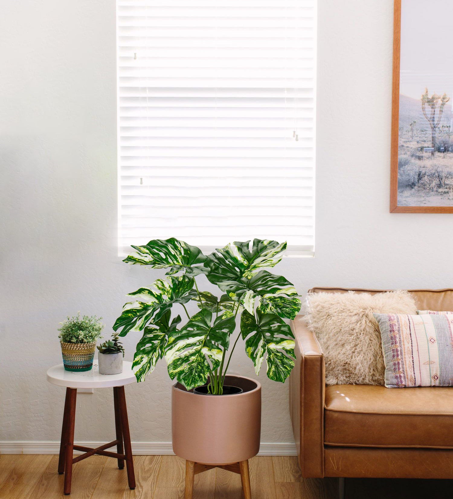 17" Artificial Monstera Plant Faux Monstera Deliciosa Plant in Black Pot - 2pcs