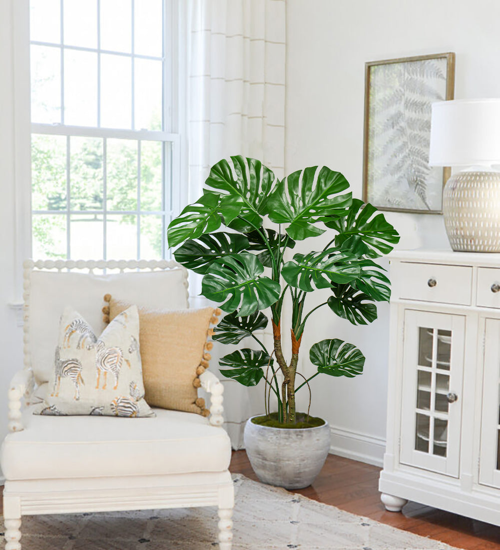 4ft Artificial Monstera Plant Fake Palm Tropical Plant Potted - 26 Leaves