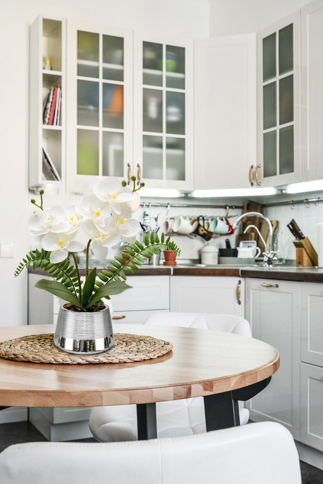 White Orchids Artificial Flowers in Silver Pot Faux Phaleanopsis Orchid Bonsia