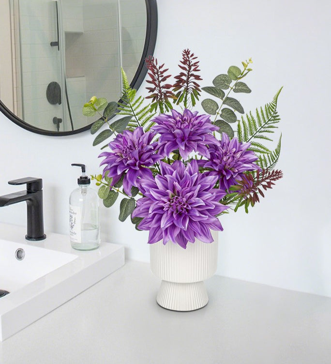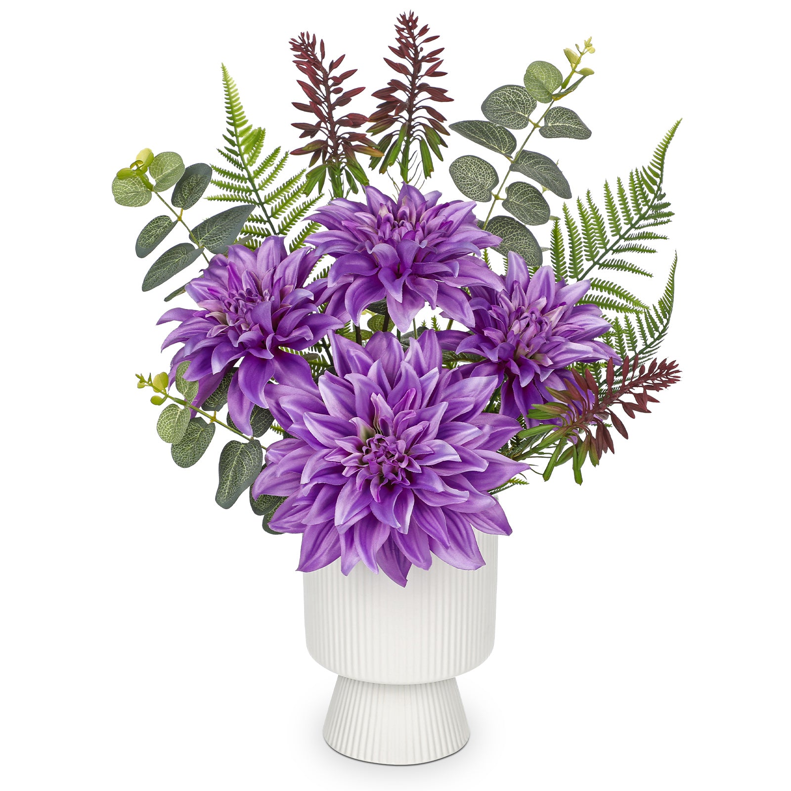 Purple Artificial Silk Dahlia Flower Potted Arrangement with Ceramic Vase