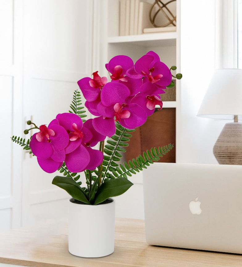 Faux Phalaenopsis Orchid Artificial Flowers with Pot for Home -15in