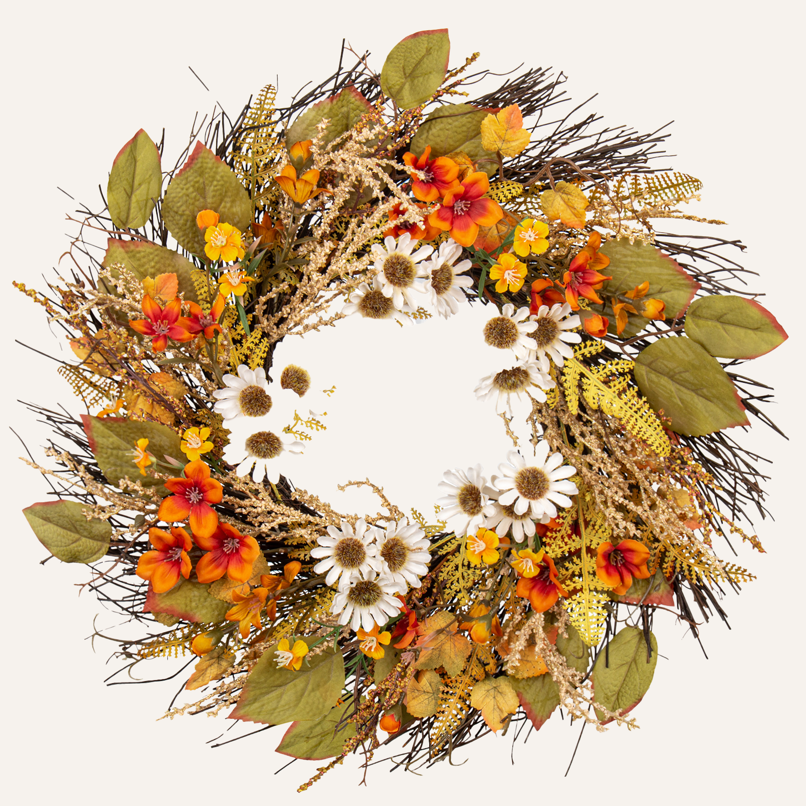 Fall Wreaths with Daisies & Gold Leaves for Front Door - 20''
