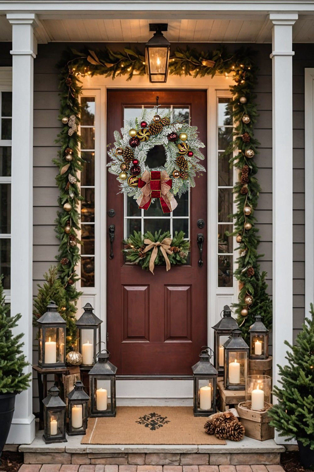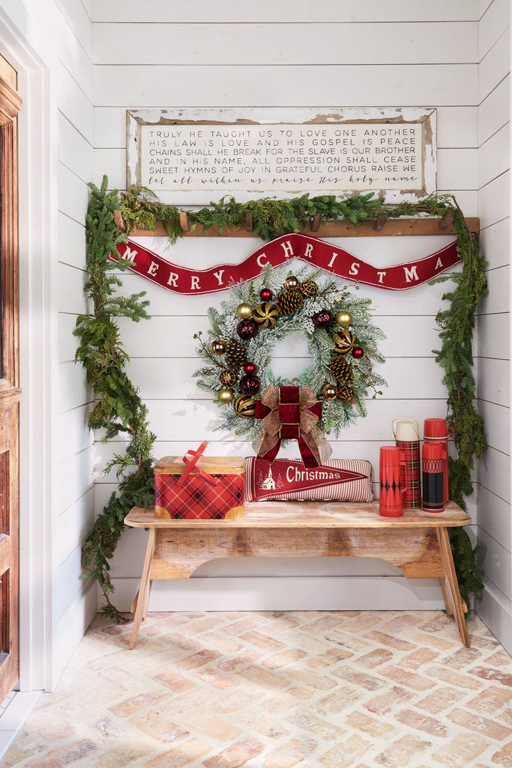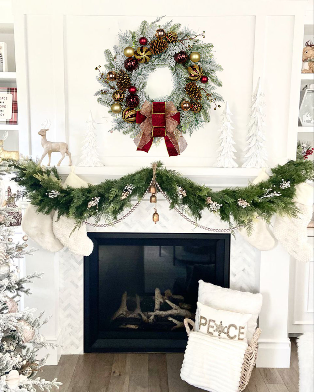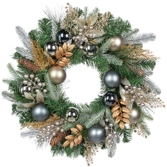 Make your holidays shine with our 24" Christmas Door Wreath—artfully crafted on a natural branch base with festive Christmas balls, rustic pine cones, golden berries, lifelike pine needles, and elegant silver bows. Snow-dusted needles add a magical winter touch, while ultra-realistic artificial branches mimic the look of fresh greenery, capturing the season’s cozy charm.