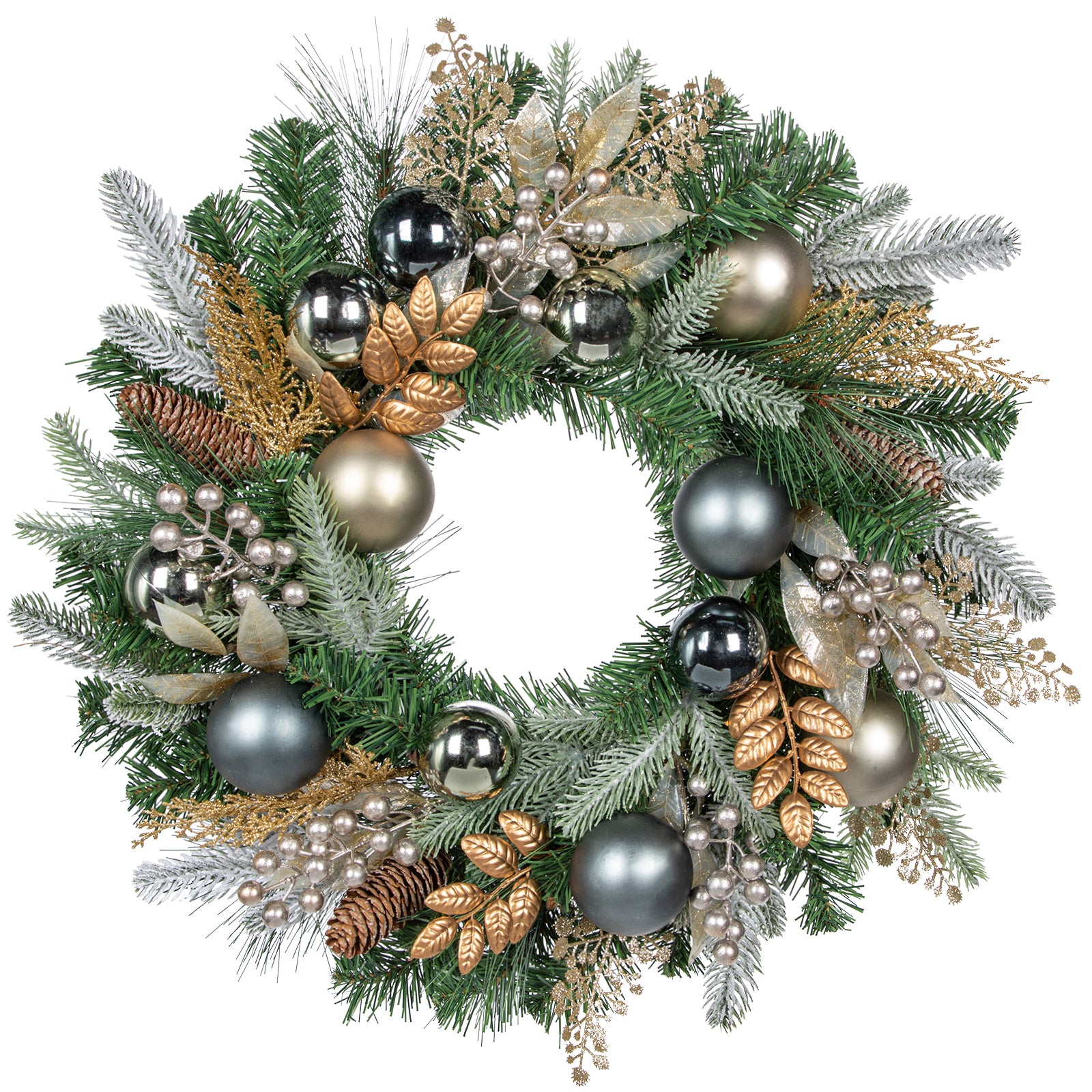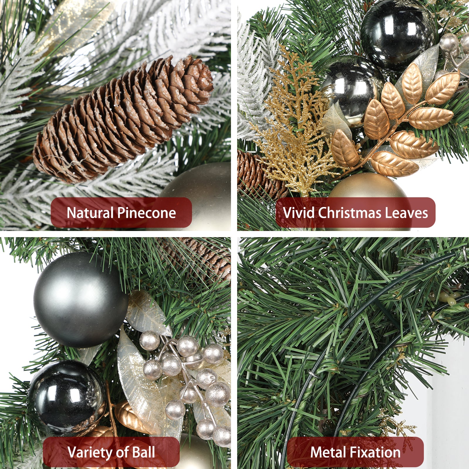 Christmas Norfolk Pine Wreaths for Front Door with Silver Ball-24“