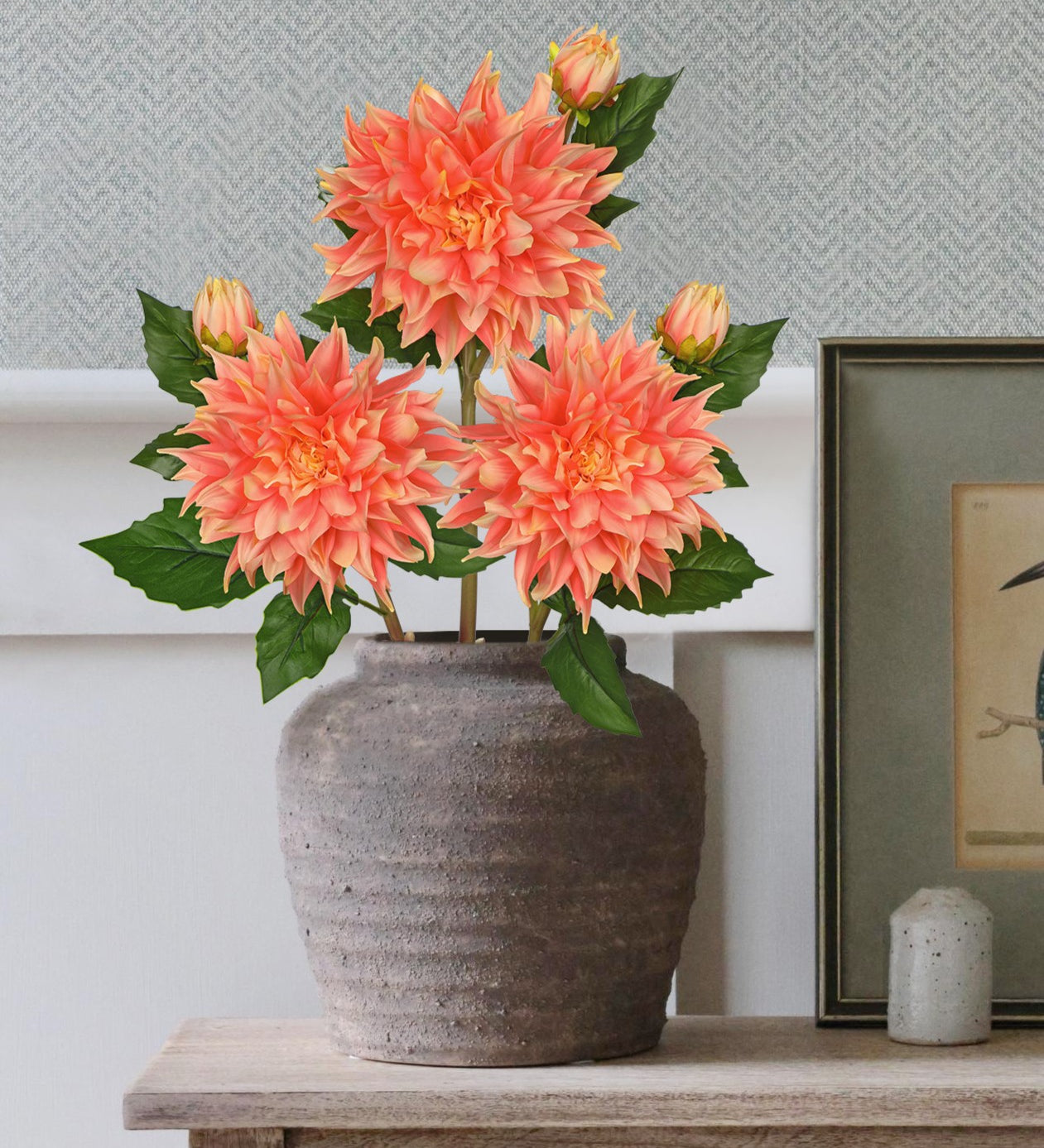 Orange Artificial Silk Dahlia Flowers with 6.1" Blooms for Home Decor