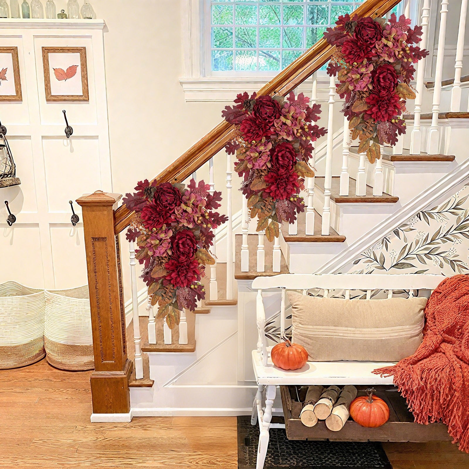 Handmade Fall Teardrop Swag Wreath with Red Hydrangea Peonies Dahlia Decor