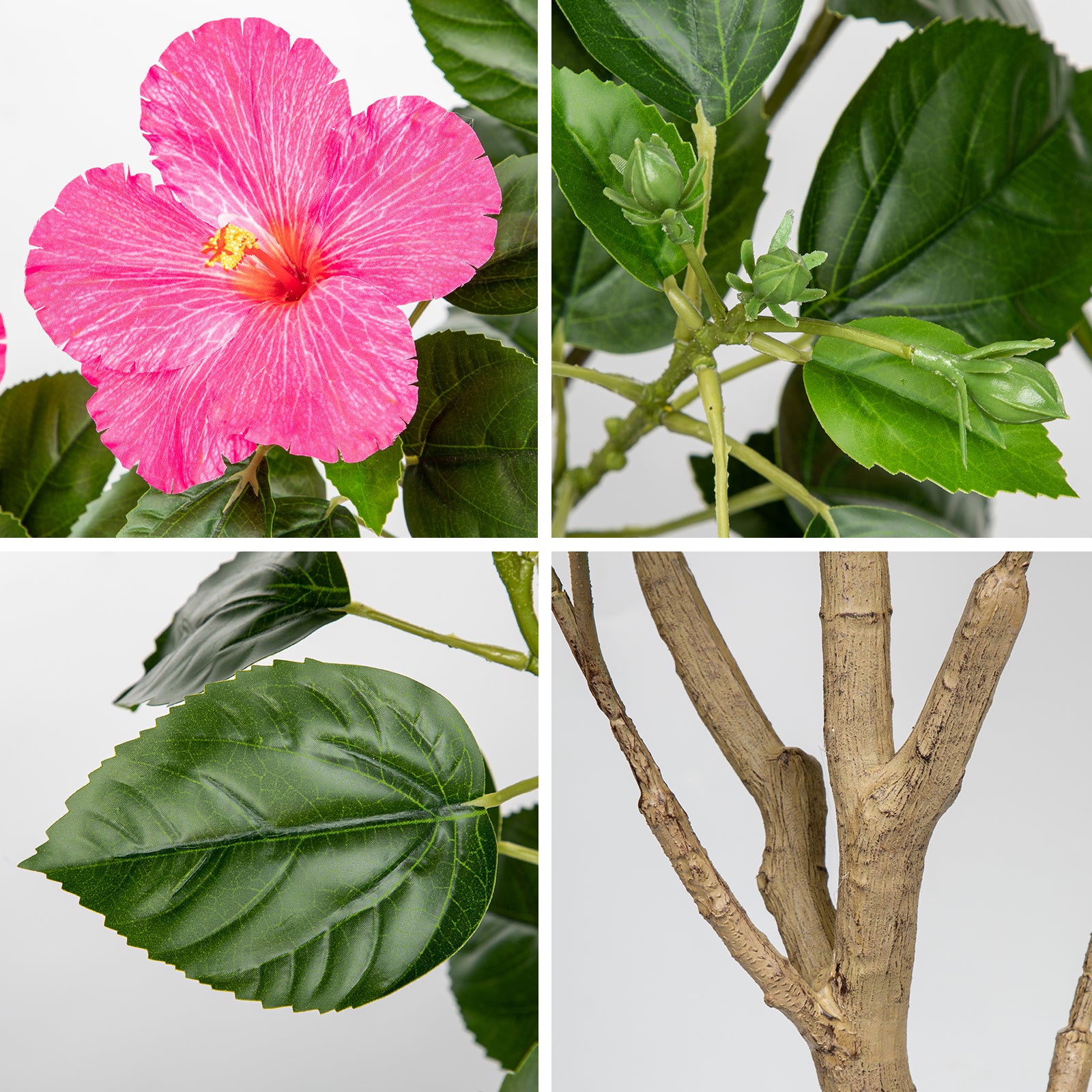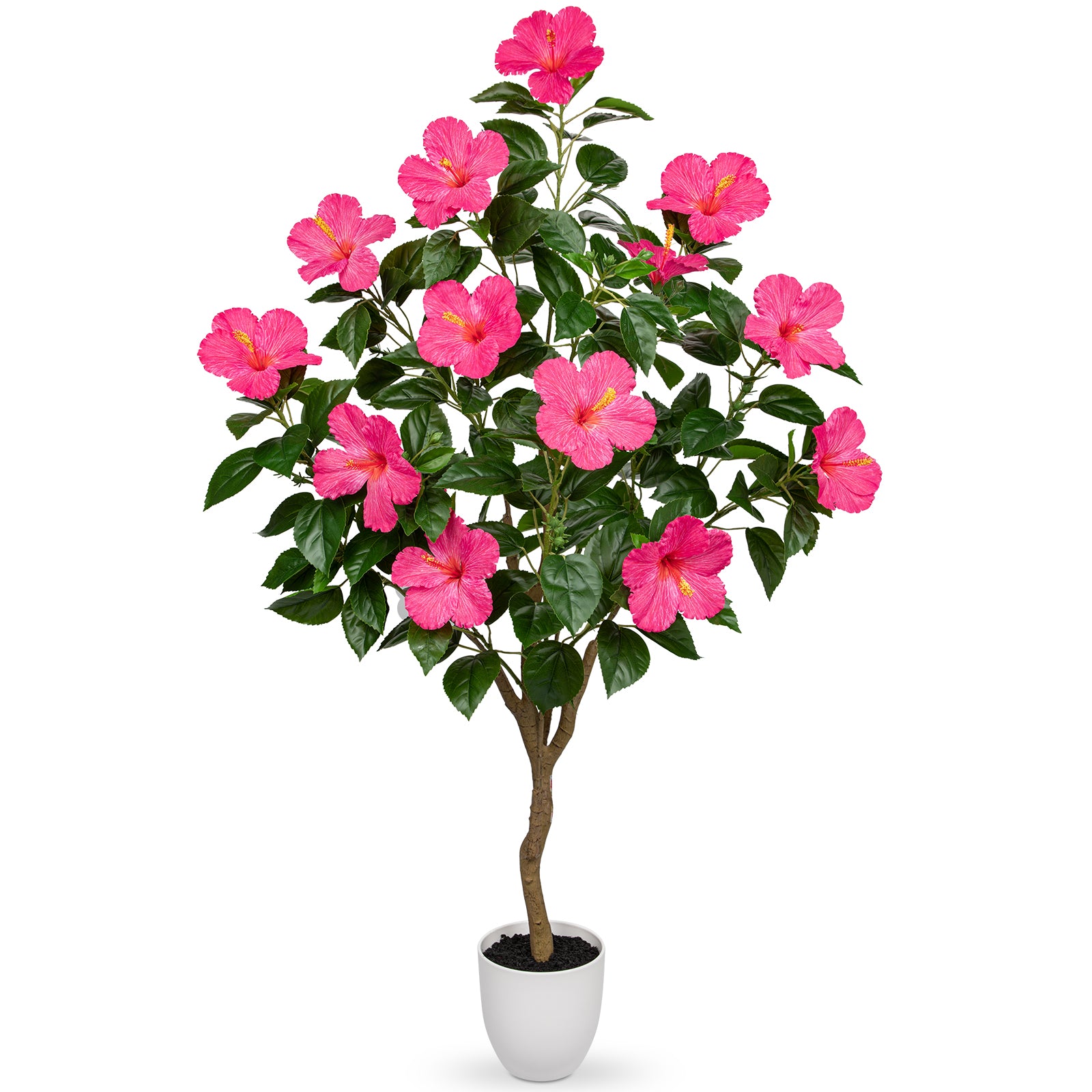 Artificial Hibiscus Tree Faux Plant Potted with Pink Flowers - 4.13ft