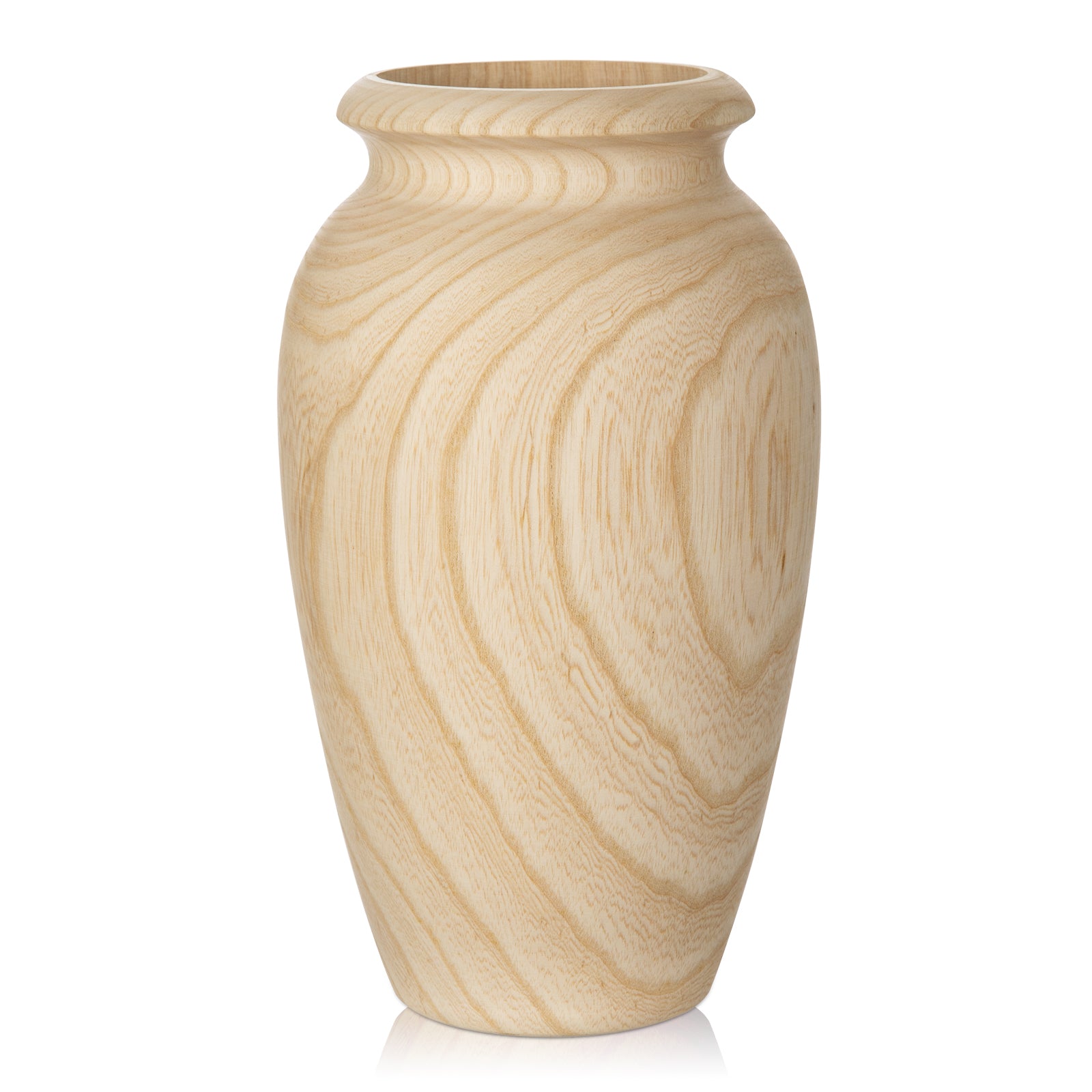The Ash Wood Vase brings natural warmth and understated sophistication, showcasing organic wood grain in sculptural designs. At 10 inches tall, it works alone on shelves/tables or as a base for faux/dried bouquets, adding beauty to any space.