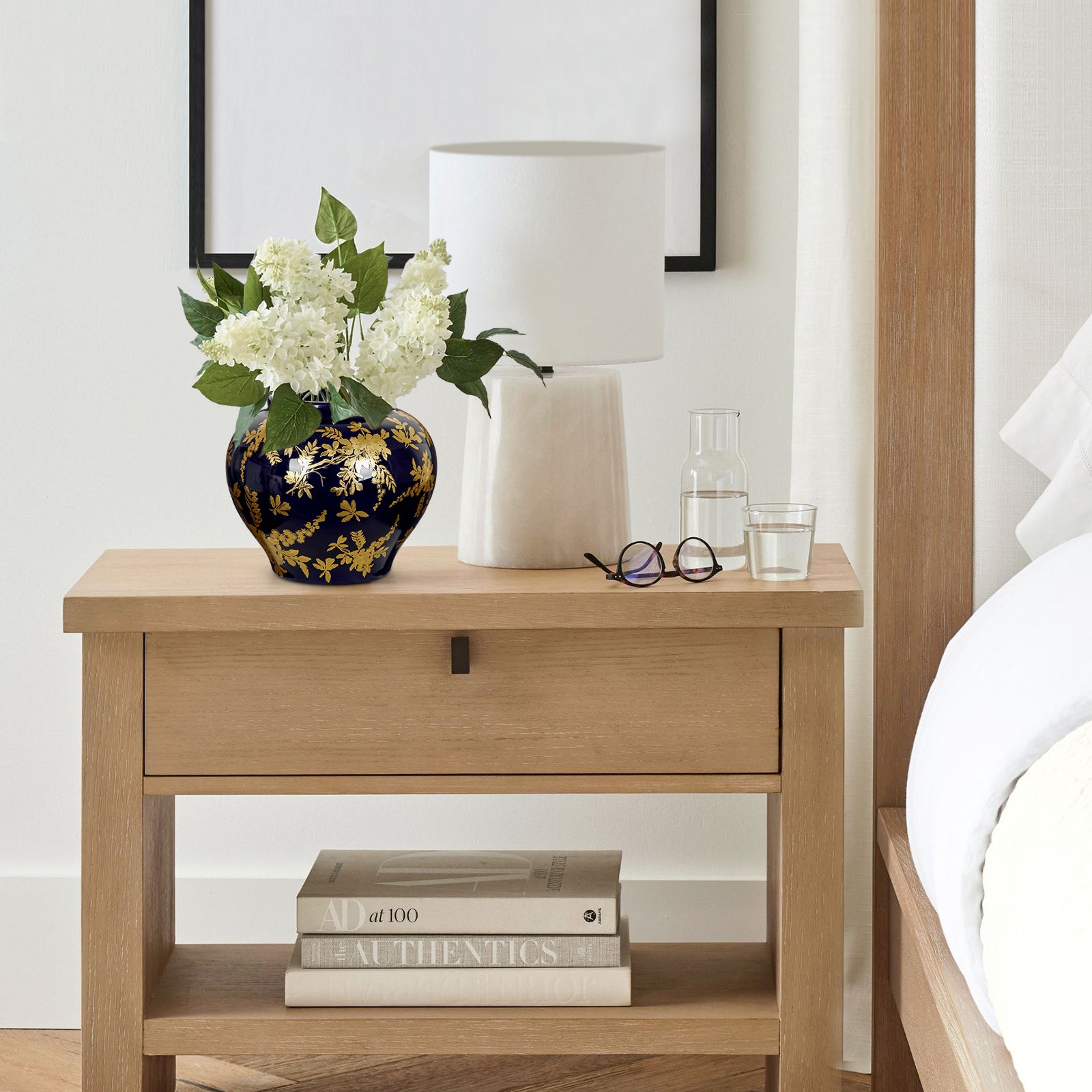 Measuring 6.3"L x 6.3"W x 5.9"H, this rectangular vase blends classic blue-and-gold tones with a modern shape, its abstract blue flows adding refined modern flair. Versatile for modern, farmhouse, boho, or classic interiors, it shines alone or with fresh/artificial flowers. Perfect for living rooms, shelves, mantels, or events like weddings, it adds aesthetic charm to any space.