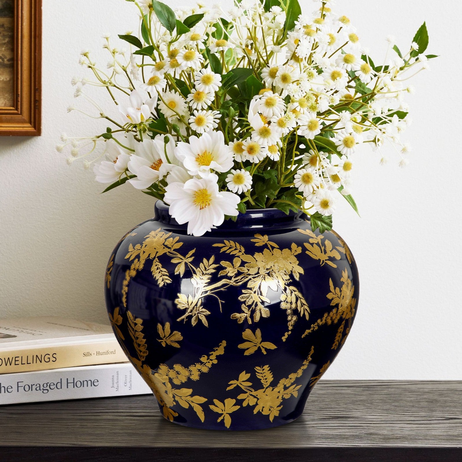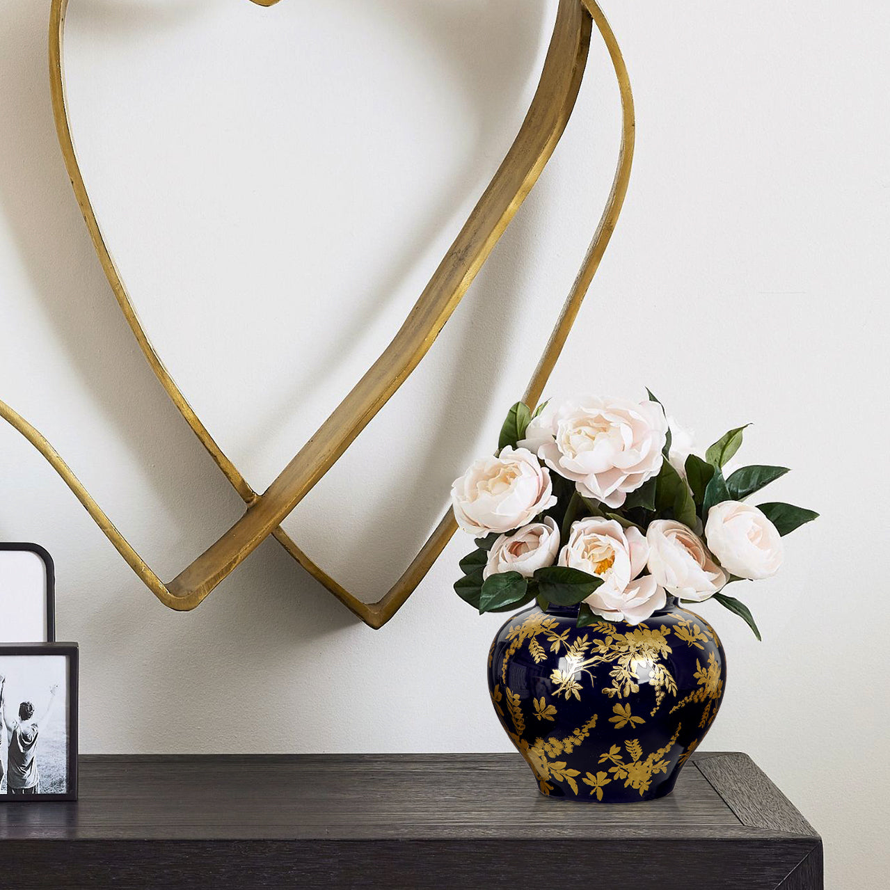 Crafted from 100% ceramic through a high-standard process, this blue and gold vase is shaped by earth, water, fire, and air—fired at 1700 degrees for durability. Its professionally designed, handcrafted lines follow the golden ratio, making each piece a unique work of art.