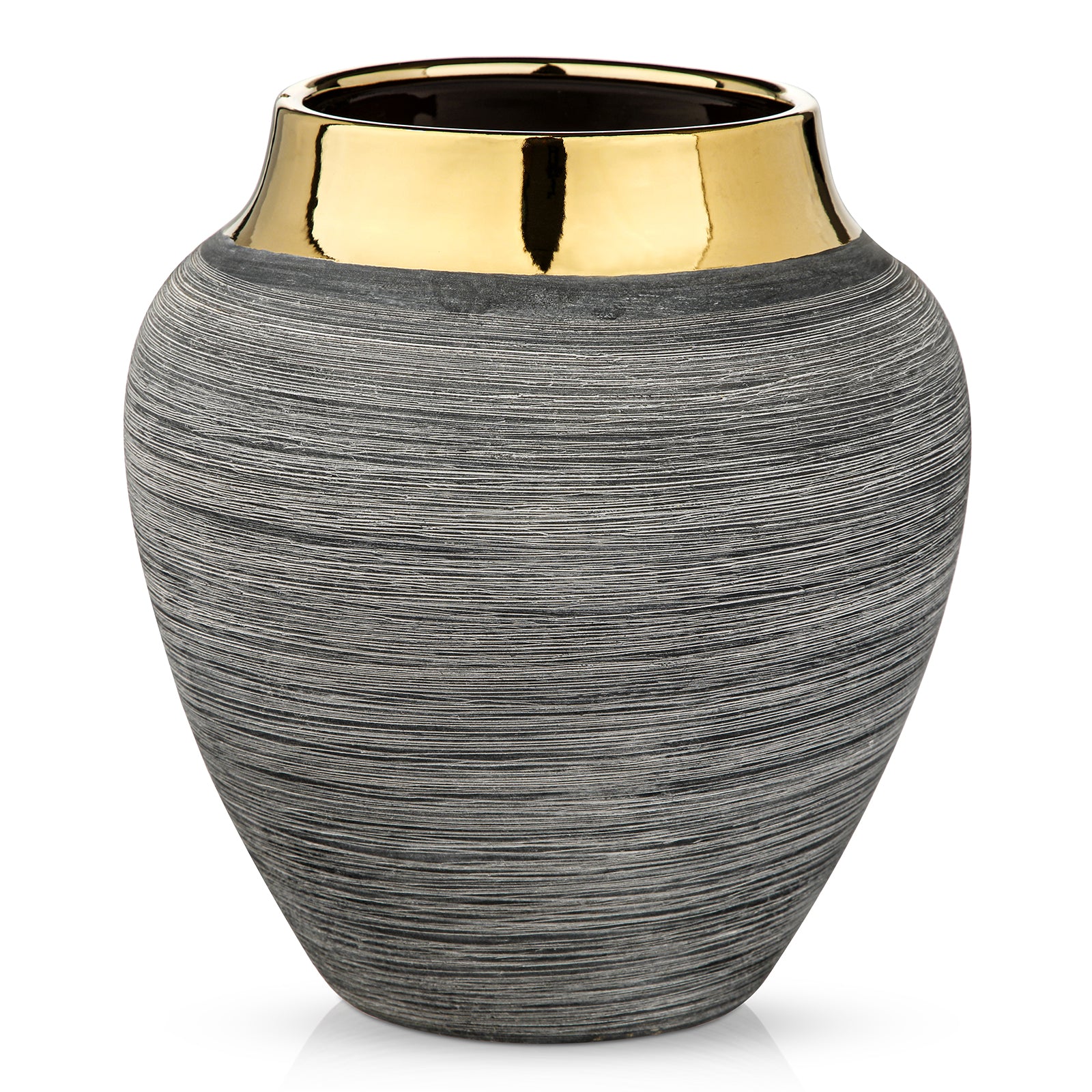 9.4" Boho Ceramic Flower Vase with Gold Rim for Home Decor - Grey