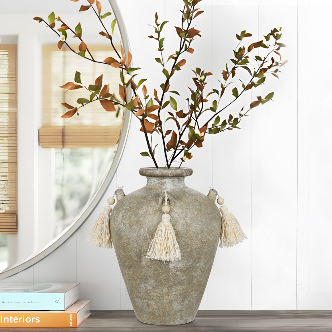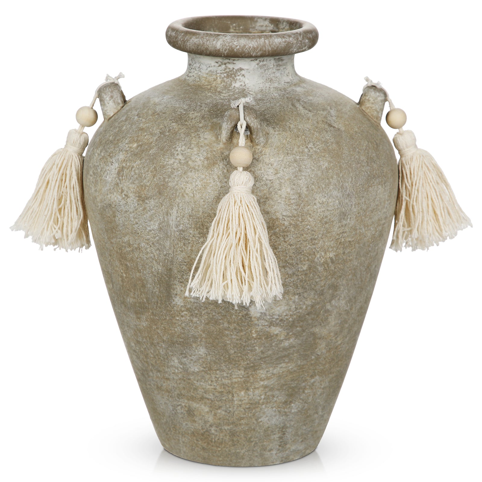 9.4" Brown Ceramic Rustic Flower Vase with Tassel for Home Decor