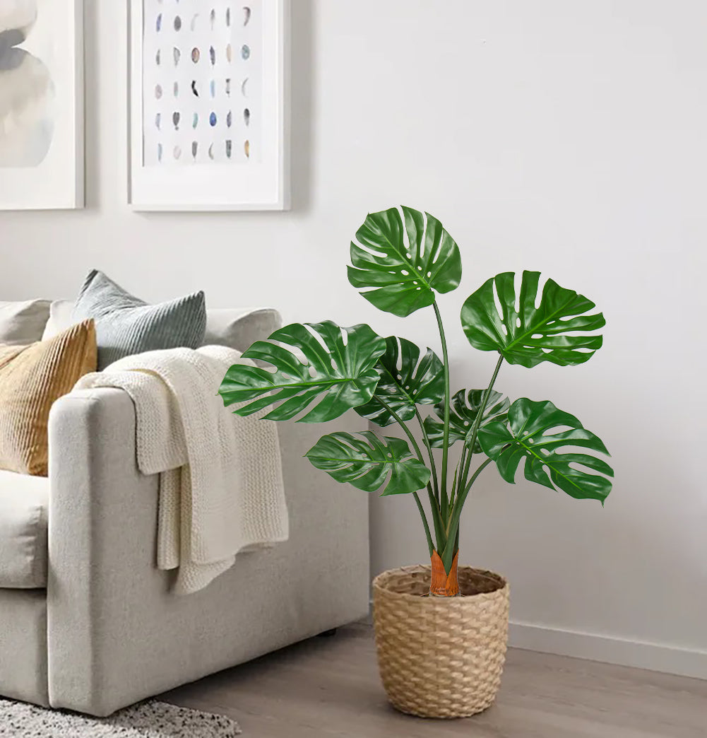 This 3-foot (36-inch) artificial monstera plant brings lush, tropical charm to any space, featuring 26 large, glossy polyester leaves that create a full, natural look with strong visual appeal—perfect for crafting your own indoor or outdoor garden oasis.