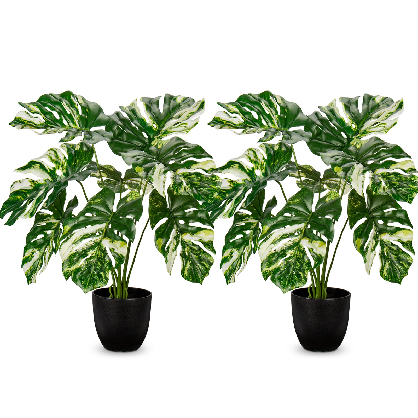 17" Artificial Monstera Plant Faux Monstera Deliciosa Plant in Black Pot - 2pcs