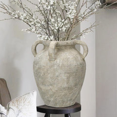 Handmade Terracotta Vintage Ceramic Vase(Gray With Handles)